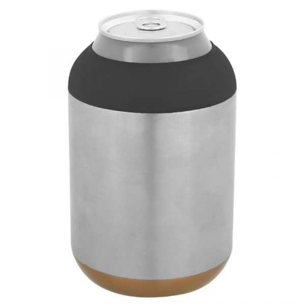 Grab everyone’s attention with our Stainless Steel Can Cooler Kit! This everlasting promotion includes a tumbler with a double wall insulated design and it has an inner wall lined with copper. It fits most 12 oz. cans and includes an interchangeable rubber ring and sipper lid. Keep your beverages hot or cold for hours with these useful tumblers!