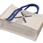 | Standard: 14" W x 16" H | Small Giveaway Tote: 10" W x 12" H x 4" D | Compact Tote: 12" W x 12" H x 5" D | Small Jute Tote: 12" W x 12" H x 5" D |